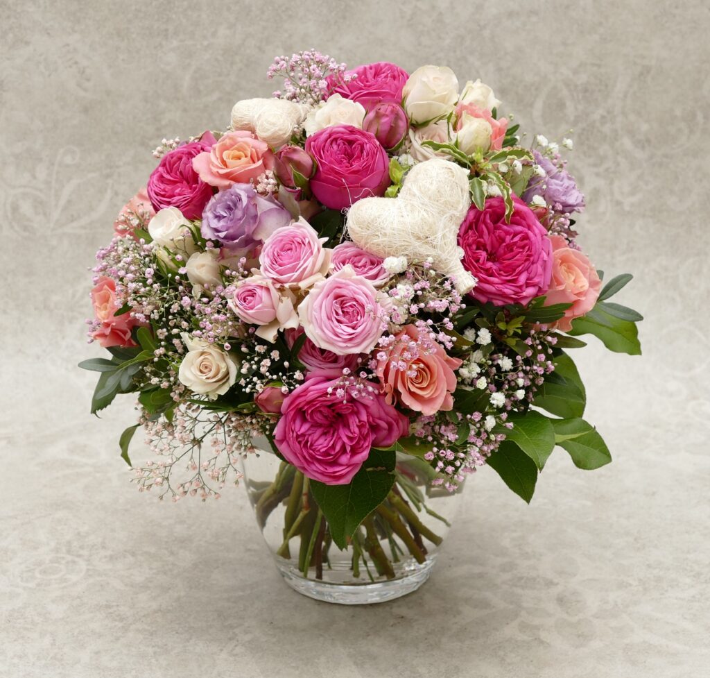 Der Strauß „Ewige Umarmung“ vereint bunte Rosen mit zartem Schleierkraut. Die leuchtenden Blüten stehen für Liebe und Verbundenheit, während das feine Beiwerk eine romantische Leichtigkeit verleiht. Ein ausdrucksstarker, zugleich sanfter Strauß – perfekt, um Gefühle auf besondere Weise zu zeigen.